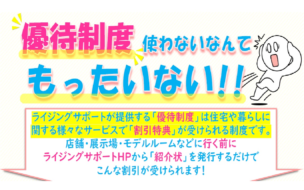 お住まいに関するトータルサービスを割引価格でご提供しております。